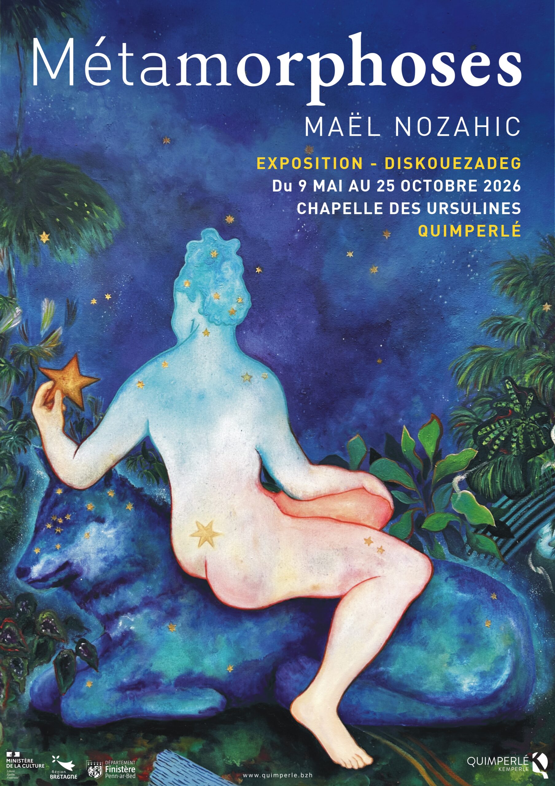 En 2025, la Ville de Quimperlé avait accordé un soutien à la création à Nicolas Fedorenko qui avait permis la création de l’installation Incertitude présentée dans l’exposition Reflets joyeux d’un sombre éclat. À l’occasion de l’exposition Métamorphoses, la Ville de Quimperlé renouvelle ce soutien. Cela permet au public de découvrir les créations inédites de Maël Nozahic : une toile monumentale pensée comme une tapisserie de la Renaissance et une installation occupant l’ensemble de l’espace de la 2e nef de la Chapelle des Ursulines, mêlant bois peint sculpté, verre, céramiques et plantes naturelles. Cette installation vient dialoguer avec l’espace de la chapelle et les œuvres les plus récentes de l’artiste. Outre le soutien financier, les équipes techniques de la Ville ont apporté leur aide et leurs savoir-faire à l’artiste pour ces nouvelles créations.
