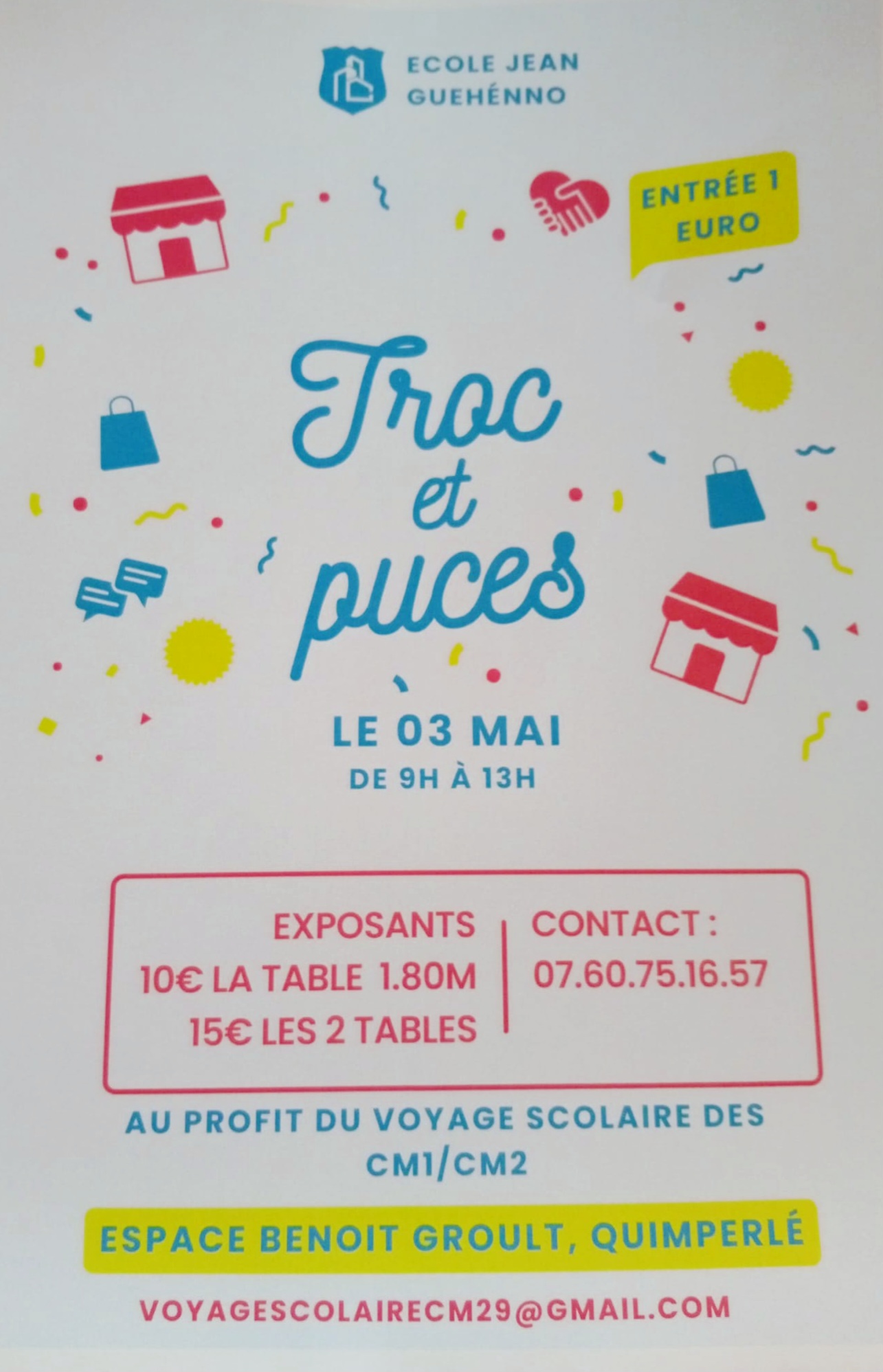 Troc et puces organisé par l'école Jean Ghéhenno de Quimperlé au profit du voyage scolaire des CM1/CM2.